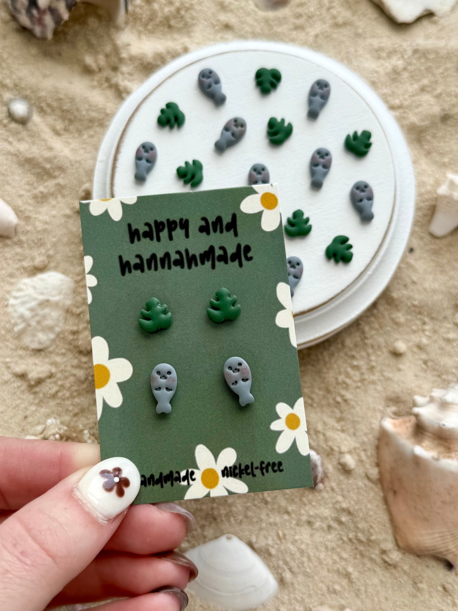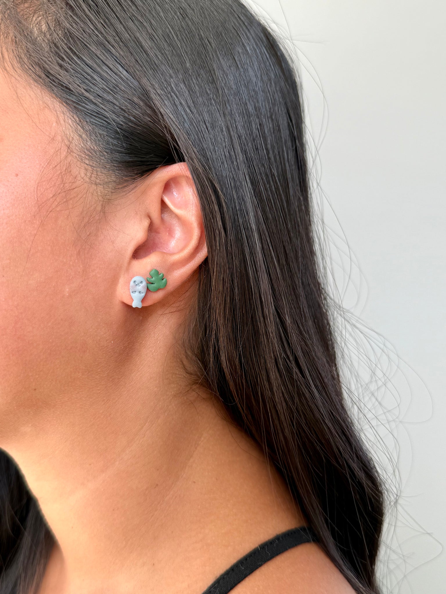 Includes manatee and monstera leaf studs